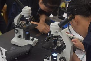 2年生理科の授業。オオカナダモ、タマネギなどの細胞を顕微鏡で観察・スケッチし、細胞質内で活動が行われていることを確かめ、原形質流動について理解を深めていました。私の記憶が確かならば、遠い昔の中学時代に観察したのではないかと思います。何人かの人の顕微鏡を覗かせてもらいました。モニターに映し出されたものと同様のものが、はっきりと見えました。