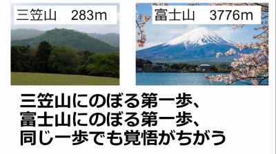 ・一から自分の生活習慣を見直し、挨拶、基礎学習の徹底、困難に打ち克つ体力・忍耐力をつけたいと思った。