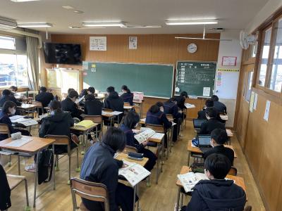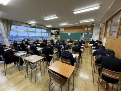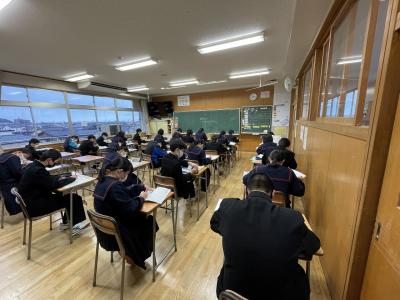 私立入試を翌日に控え、3年生は1/31(火)4限目に学年集会を行いました。校長や進路担当からの話の後、3年生は早めに給食を済ませ、明日に控えて下校しました。