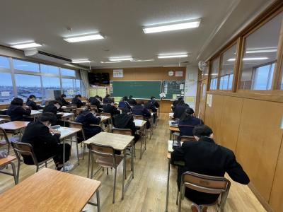 本日は3年生「郡市統一テスト」、1・2年生は実力テストです。
