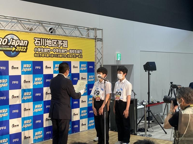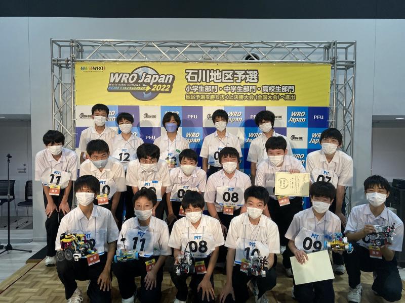 7/23(土)、津幡町福祉センター 大ホールにて標記大会が行われ、本校からは科学工作部のメンバーが出場しました。大会の結果、ミドル部門優勝の中村洸さん、坂田さん、水元さんは、8/28(日)静岡県浜松市で行われる「WROJapan2022 決勝大会」に出場が決定しました。おめでとうございます。そして、科学部の皆さん、本当によく頑張りました。