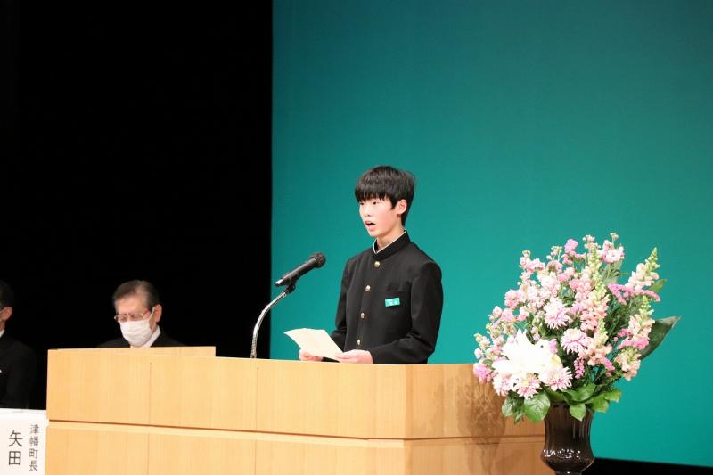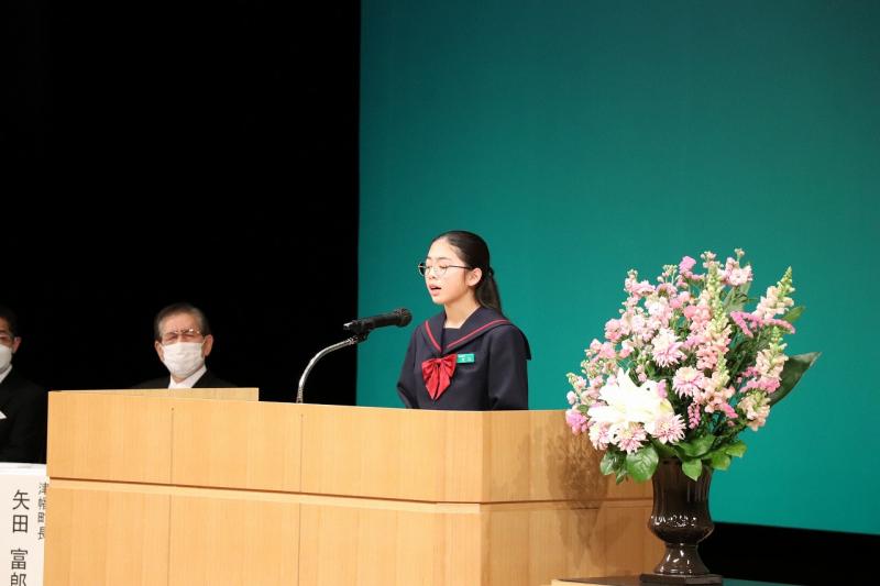 2/1(水)に令和4年度津幡町立志式が開催され、津幡中学校・津幡南中学校の2年生が出席しました。立志の主張の代表者として加藤さん・北口さん、記念品目録贈呈の代表者として前田さん、立志の誓いの代表者として髙宮さんが壇上に上がりました。どの代表生徒もとても凛々しく、特に加藤さんと北口さんの主張は内容も本当に素晴らしかったです。