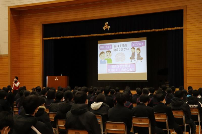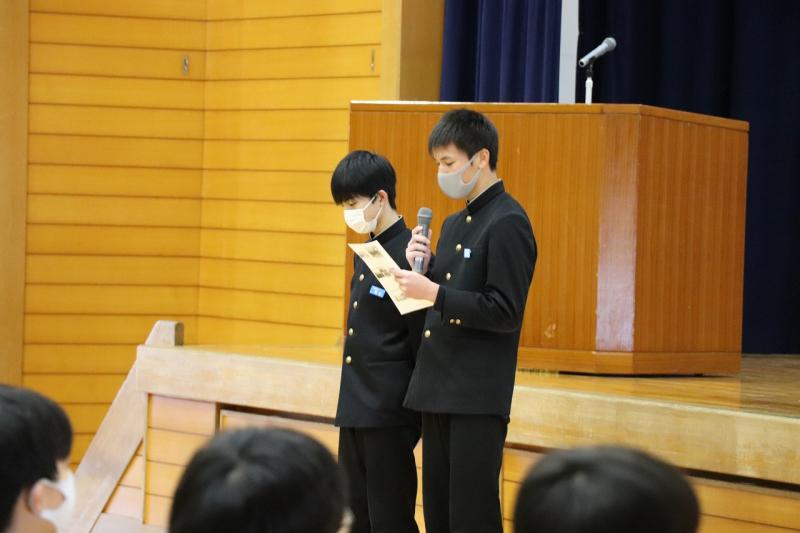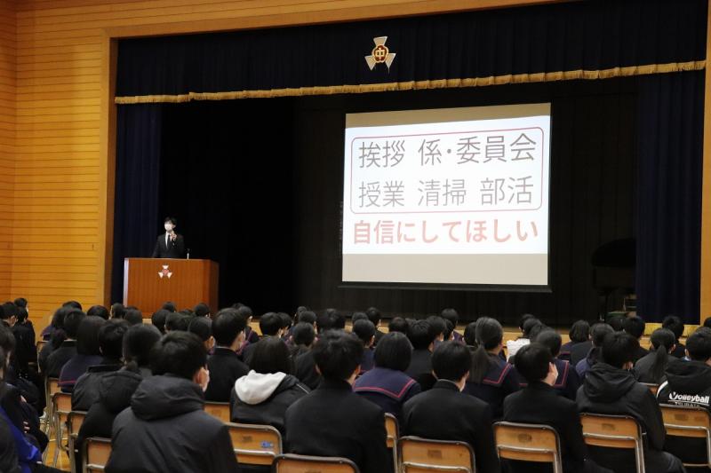 2/2(木)1限に本校体育館で全校集会を行いました。