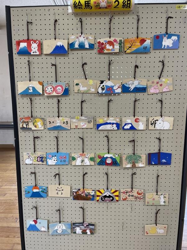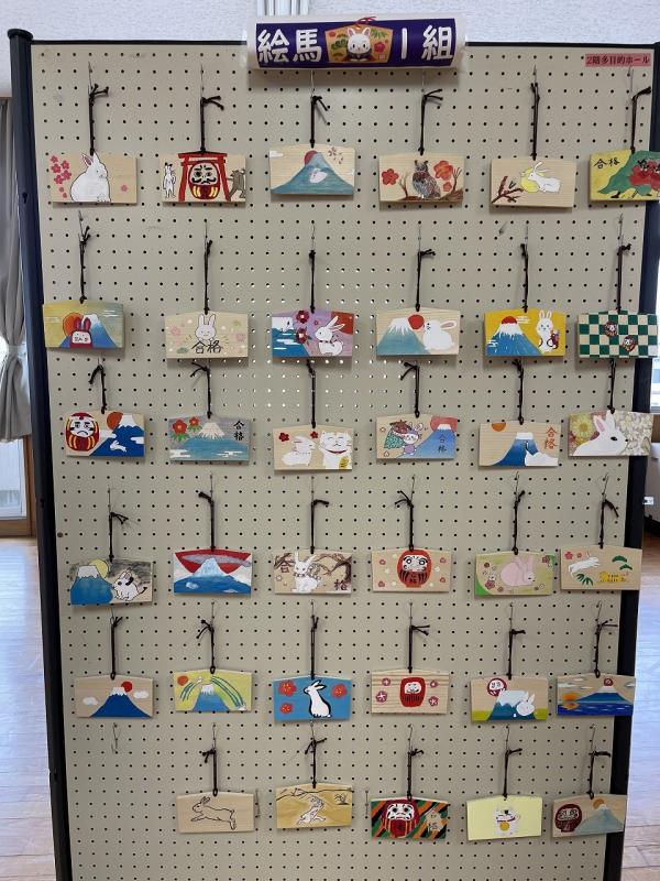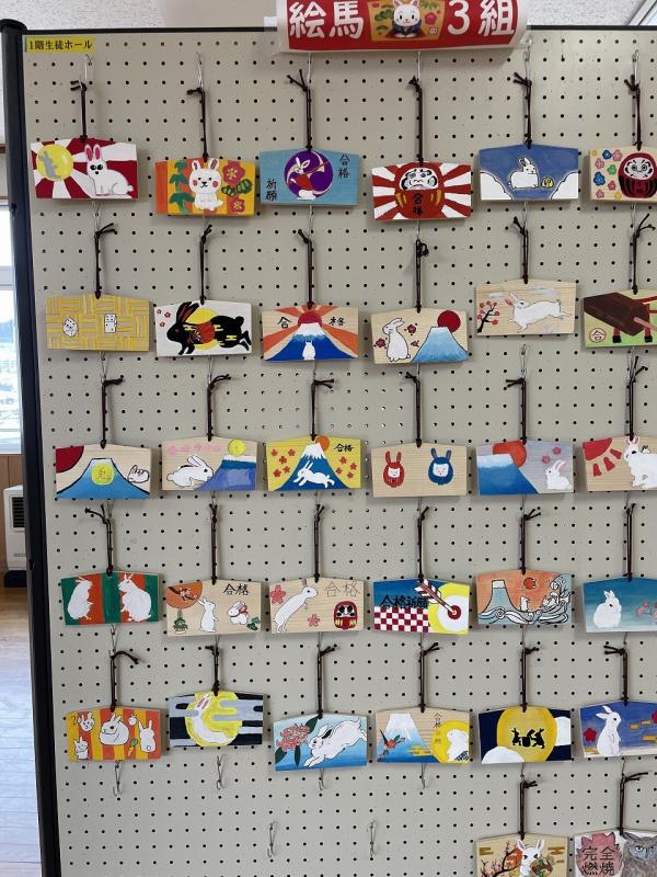 3年生美術科では、絵馬の作成に取り組みました。学業成就を願い、今年1年の飛躍を誓い、一人ひとりが心を込めて作成しました。見事な作品ばかりです。