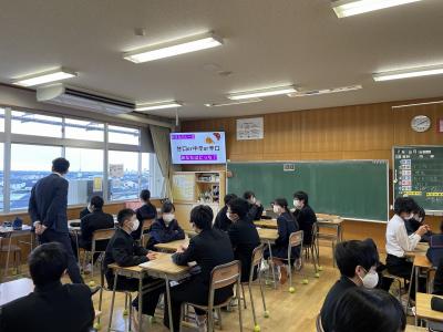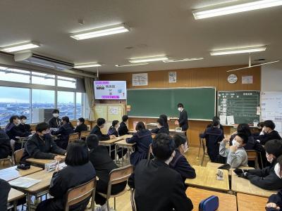 コロナ禍での生活も3年が経過しています。コロナ禍での心の変化について、保健委員会では全校生徒にアンケートを取りました。その結果の報告を行いました。また、ネガティブな心をポジティブに変える発想法について自作のプレゼンを用意し、発表しました。2/22(水)は2年生の保健委員が各学級で発表を行いました。どの学級も生徒たちは真剣に聴いていました。2年生保健委員会の皆さん、ありがとうございました。
