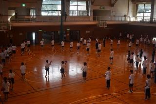 朝からあいにくの雨模様。今日は午前中、グランドで各学年種目練習及び予行練習の予定でしたが、変更を余儀なくされました。8時30分から、体育館で各学年30分間の種目練習、それと並行して他学年はアピールタイムのダンス練習を行いました。
