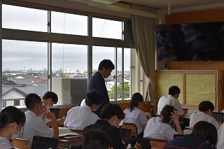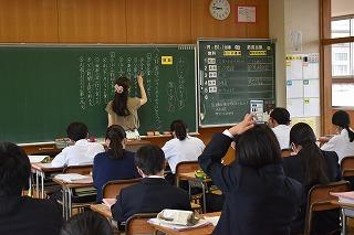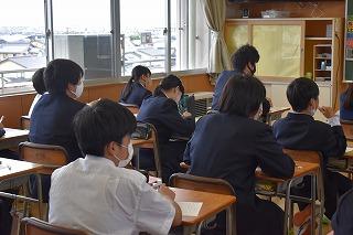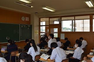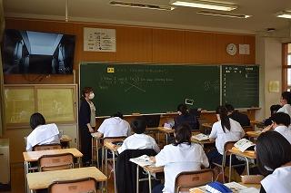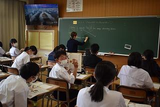 2年生英語科少人数の授業。「~のとき」と英語で言うときの表現を確認していました。1人1人集中して、先生の説明を聞き、先生の質問にも答えていました。