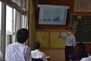 1年社会科の授業。教室におじゃました時は、ちょうどローマと東京の年間平均気温と降水量のグラフを比較し、その違いについて自分の考えを発表している場面でした。3名の発表を聞きました。どちらの生徒も、グラフから分かることを、聴き手に分かりやすく、筋道立てて、堂々と発表している姿に、大変感心するとともに、その姿を見てとてもうれしくなりました。