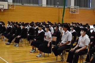 本日、河北郡市の教育課程研修会がありました。本校では、保健体育科の研究授業がありました。星場先生が、2年4組で授業をされました。私は、別会場での英語の研究授業を参観しなければならず、授業を見ることができませんでしたが、4組の生徒の皆さんがしっかりと頑張ってくれたと聞いて、とっても嬉しい気持ちです。4組の底力ですね。ありがとう。