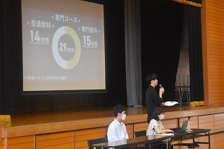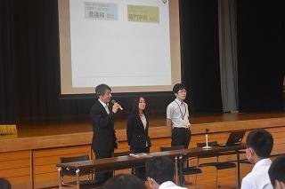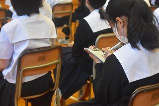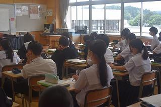 本日5、6限目に、3年生の生徒の皆さん及び保護者の皆さまを対象に、高校説明会を開催しました。県内の5つの高等学校の先生方に来校いただきました。限られた時間の中ではありましたが、各高校それぞれの特色等をお話しいただき、今後の具体的な進学希望校の選択を考えるうえでの大変貴重な機会となりました。来校いただきました各高校の校長先生をはじめとする先生方、卒業生、ビデオ出演していくれた卒業生、本当にありがとうございました。また、来校いただきました保護者の皆さま、ありがとうございました。