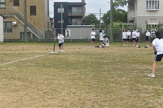 2年生保健体育科の授業。ソフトボールのゲームをしていました。「もう少し外野下ろう」「もう少し左に寄ろう」「次アウト取るぞ!」などのみんなでアウトを取りにいこうとする前向きな声、あるいは送球ミスをしたときは、「ごめん」「ドンマイ」「惜しい」の声、チームに一体感が感じられて、とっても素敵な光景でした。プレーもみんな上手でした。