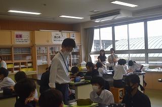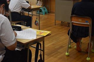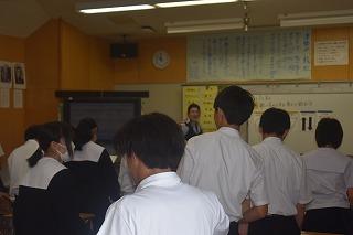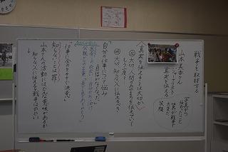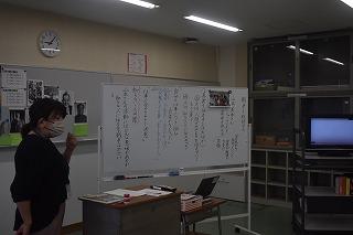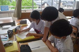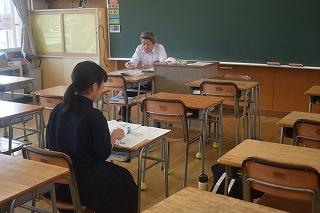 やはり研究授業は緊張するものです。でも、生徒たちに、「先生、『ゴム』と書くところを『ゴミ』と書いてあります」とつっこまれ、「いやあ、今日はとっても緊張してるな」と答えて、互いに微笑み合う温かい場面を見ることができました。