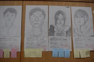 4階美術室前に、3年生自画像デッサン「表情豊かな自画像」の作品が展示されてきています。じっと眺めていると、その人の人物像が浮かび上がってくると同時に、何かを語りかけてくるような気がします。素敵な作品達です。