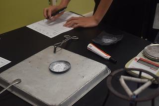 2年生理科の授業。《マグネシウムの質量と結びつく酸素の質量に限りがあるのか》を課題に、実験に取り組みました。「加熱⇒金属のお盆上に乗せる⇒冷やして薬さじで混ぜる⇒電子天びんで質量を測る」の手順で、何回かの測定を繰り返しました。どのグループも熱心な実験の様子でした。マグネシウムと酸素が化合するときの質量比は どうなるのか、また教えてくださいね。