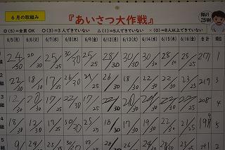 1年生の多目的フロアに、「あいさつ大作戦」の各クラスの集計結果及び振り返りが掲示されています。授業の始めと終わりの挨拶をしっかりとして、気持ちよく授業を始め、気持ちよく終わる、ということで取り組んだものです。