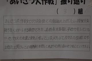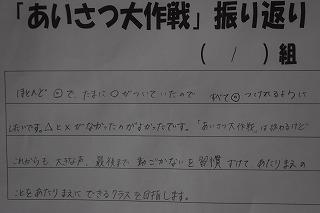 「あいさつ大作戦は終わるけど、これからも大きな声、竿後まで動かないを習慣づけて当たり前のことを当たり前にできるクラスを目指します。」