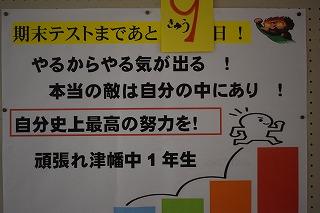 今日は期末テスト2日目。各学年5教科のテストが実施されます。明日以降の授業で、答案の返却の時間があると思います。繰り返しになりますが、返ってきた自分の答案用紙を先生の解説を聴きながら、しっかりと見直してください。正解に至らなかった要因は何なのか、具体的に分析することが大切です。「ケアレスミス」、「ここまでは理解できていたが…」等々、それぞれの原因があるはずです。次回のテストで同じ失敗を繰り返さないためにどう行動していきますか。勉強時間が足りなかった。これはやるしかありません。1年生フロアに期末テストに向けての勉強方法ややる気を引き出す先生方のアドバイスがありました。各教科の勉強方法が分からないなどの悩みがあれば、ぜひ教科担当の先生にアドバイスをもらってください。目標に近づきたいのなら、自ら動く。ちなみに英語に関する質問や悩みは私もどんどん引き受けます。いつでも声をかけてください。校長室へもどうぞ。
