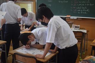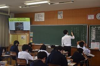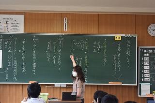 梶原実習生、研究授業お疲れさまでした。今日の振り返りを担当の西田佳代先生としっかりと行い、残りの授業に生かしてください。また、意欲的に学んでくれた1年2組の皆さん、ありがとうございました。