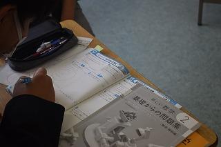 1限目におおぞら学級におじゃますると、連立方程式の問題に取り組んでいました。1問解いて答え合わせ。見事正解。うれしそうな表情。続いてもう1問にチャレンジ。一歩一歩積み重ねていこうね。