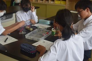本日5限目に、梶原教育実習生の理科の研究授業がありました。「金属とそれ以外の物質はどのように区別できるだろう」を課題に授業が進められました。