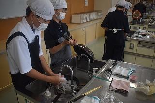 1年生家庭科の授業。今日は調理実習。1人1人が「タラのムニエル」の調理にチャレンジしました。材料準備☛両面に塩コショウ☛余分な水分を押しふき☛小麦粉をまぶす☛中火で表面から焼く☛ひっくり返す☛皮目を焼くの手順に従い、みんな上手に調理していました。香ばしい香りがたまりませんでした!皆さん、自分で調理したタラのムニエルのお味はいかがでしたか?