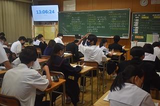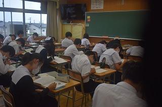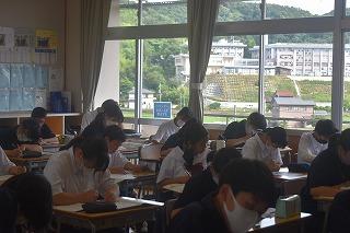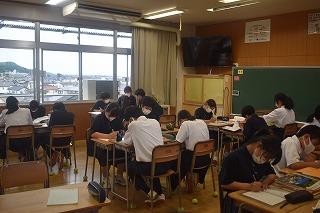 明日28日(水)から、1学期期末テストが始まります。今日の授業では、プリントやワーク等を用いて試験範囲の学習内容を確認している様子を多く見ましたが、どの学年の生徒の皆さんもしっかりと取り組んでいました。さて、諸活動停止期間(一部部活動を除く)に、自分の学習計画にしたがって勉強を進めることができたでしょうか?1、3年生は昼学、また1年生は質問教室や自習教室も実施しました。自分の実力を高めるための近道はありません。まずは全ての授業を大切にする、そして学習内容で十分に理解できなかったところは家でもう一度チャレンジ、それでも分からなければ先生や友達に質問する、ワークや問題集で本当に理解できているかを確認する、地道な日々の積み重ねが最後に自分自身の実力となって返ってきます。今日は、明日の実施教科の確認をしっかりと行ってください。