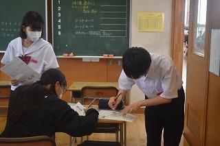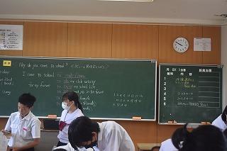 2年生英語科少人数授業。現在、不定詞の用法について学習中。"Why dou you come to school?"と相手に質問し、不定詞を用いて答えるやり取りを通して習熟を図りました。私も1人の生徒さんに"Why dou you come to school?"と質問されたので"I come to school to see student's smile."と答えました。ちょっとかっこよすぎますか?