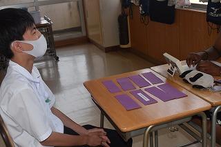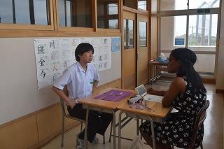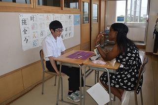 3年生英語科の授業。パフォーマンステストを実施していました。各自が選択したトピックについて、シャーデー先生とフリートーク。シャーデー先生の質問にも上手に答えていました。やりとりしている表情もとっても素敵でした。