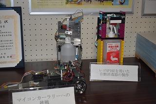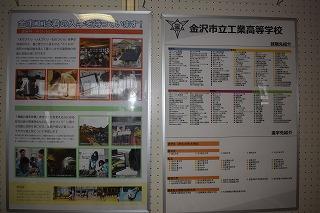 金沢市立工業高等学校の各科生徒の皆さんが製作した作品が、1階生徒玄関ホールに展示されています。「犀川大橋の模型」「レゴSPIKEを用いた自動消毒器」「マイコンカー」「3Dプリンタで作った学校模型」「ものづくりコンテスト木材加工部門課題作品」と、どの作品も興味深いものばかりです。作品は本日27日から1週間展示されます。