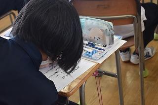 3年国語科の授業。言葉やリズムにこだわりながら、創作俳句に取り組んでいました。ちょうど授業を参観した時は、クラスのみんなの俳句を鑑賞中でした。皆さんとっても楽しそうに、他の作品を鑑賞していました。どんな作品が、このクラスのベストワンに選ばれたのでしょうか?