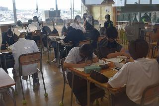 29日(木)からの1学期期末テストに備えて、1、3年生は昼休みを利用した自学に取り組んでいます。3年生は1年時から、1年生はこの期末テスト前から取組を開始しました。3年生はさすが、取りかかりが早いです。限られた時間ですが、積み重ねていくと大きな力となって、自分自身に返ってきますよ。継続は力なり!