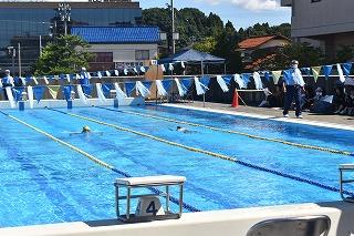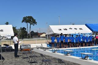 本日、河北郡市新人大会の先陣をきって、水泳競技が本校プールにて行われました。今日も強い日差しが降り注ぐ暑さ厳しい日となりましたが、各種目に出場したどの選手も、夏の練習の成果を発揮しようと懸命な泳ぎを披露していました。水泳部は、9月に入るとすぐに県新人水泳大会が行われます。大会までの残りの期間、しっかりと調整して大会に臨んでください。