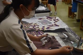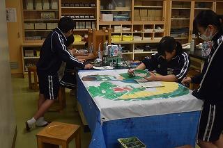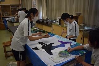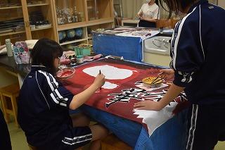 運動会に向けて、各団の団旗係が集まり、団旗を制作中です。まだ途中段階ですが、素晴らしい作品に仕上がることは間違いありません。完成がとっても楽しみです。