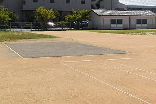 夏季休業中に、グランドの直線走路及び幅跳びエリアの改修を行いました。経年の使用で、各走路の土が削れ、体育に授業時や陸上部の練習時において、大変走りづらい状態でしたがきれいに整備されました。