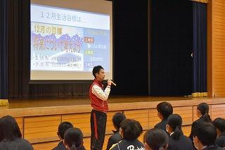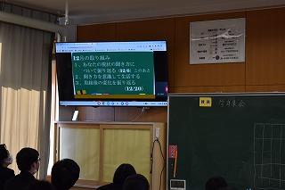 学習担当の鶴山先生、生活担当の奥泉先生からは、12月の目標「将来について考えよう」について、学習面、生活面の観点からそれぞれ話がありました。