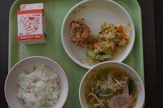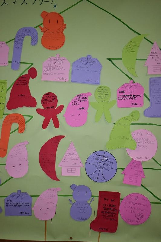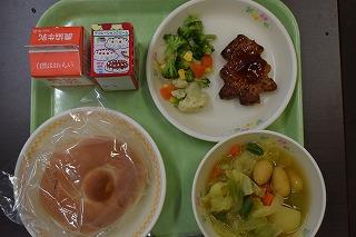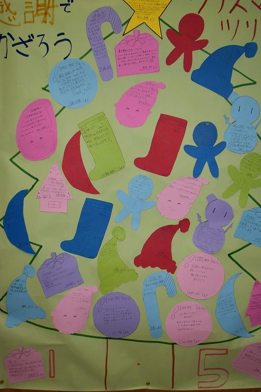 今日はクリスマスということで、給食も「クリスマス献立」。メニューは、米粉ミルクロール、もみの木ハンバーグ、カラフルサラダ、カレースープ煮、デザート(クリスマスケーキ)でした。調理師、調理員の皆さん、栄養教諭の田路先生、2学期も美味しくて栄養満点の給食を、本当にありがとうございました。来年もよろしくお願いします。