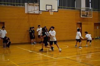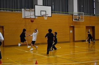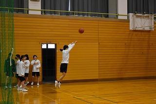3年生保健体育科の授業。先週までの柔道の学習を終え、これからは球技「バスケットボール」の学習に入ります。男子日本代表が来年のパリオリンピックの出場を決めたりと盛り上がりを見せているバスケットボール。授業を参観した時は、5グループに分かれて、動きながらパスをもらってシュートという基本練習に取り組んでいました。バスケットボール部の練習かと思うくらい気合の入っているグループもありました。