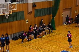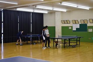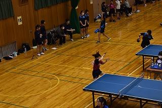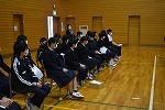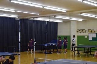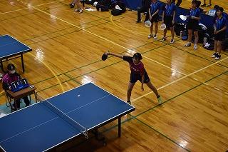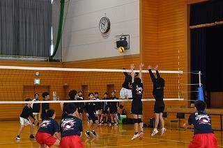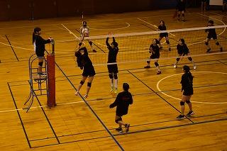 隣の総合体育館では、男女卓球部と女子バレーボール部が練習。卓球部は、コーチ、顧問の先生方の指導を仰ぎながら、楽しそうに練習に励んでいました。女子バレーボール部は練習試合。県選抜大会に向けて、ひとつひとつ課題をクリアしていってください。