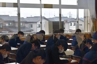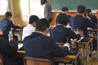3年生は、本日第3回河北郡市統一テストに挑んでいます。時間いっぱい最後まであきらめず、粘り強く問題と向き合ってください。