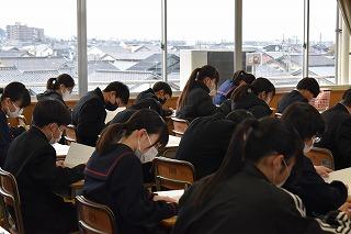 3年生は昨日学年集会を行い、5限目は年明けの推薦入試受検者の面接練習や願書指導等が行われました。「きみが勝つ準備をしていなければ、どの試合も勝てない。」この冬休みそして3学期も、自分の目標に近づくための準備をしてください。