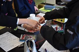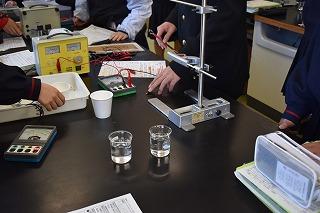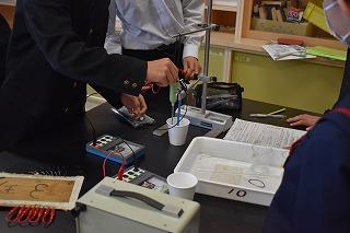 2年生理科の授業。熱量と温度変化について学習していました。電熱線に電流を流した時間と水の温度上昇との間にどのような規則性があるかを見いだすことをねらいに、各グループで実験に取り組みました。実験結果をまとめ、グラフ化し規則性を探りました。どのグループも素早く準備し、各役割を自覚しながら協力して実験に取り組む様子に、皆さんの成長を感じました。
