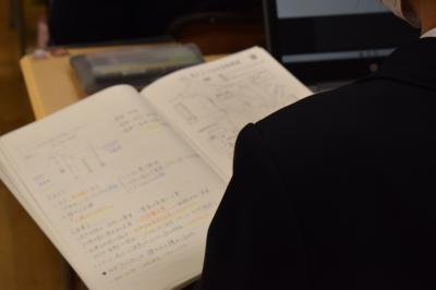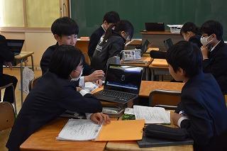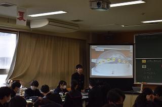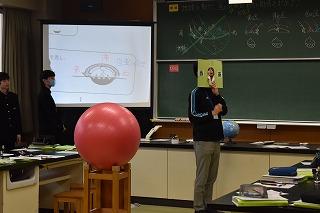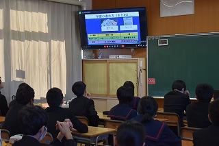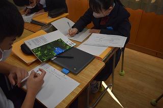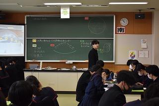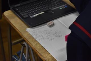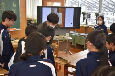 3年生理科の授業。現在は、天体分野を学習中。今日は、太陽の動きの特徴について考えていました。考察の場面を少し拝見しました。「気付いたこと、分かったこととは?」の先生の発問に一斉に手が上がりました。「この気付きは別の角度で言い換えると?」「この発言をつなげると?」。先生の発問に、自分の考えを伝えようとする挙手が止まりませんでした。