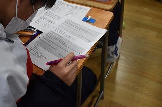 本日2年生は、1、2限目に県評価問題(国語・数学)に取り組んでいます。この評価問題は、今までの学習内容についての基礎的・基本的な知識の定着状況と、それらの知識を活用して課題を解決する力がどの程度身に付いているかを確認するためのものです。あわせて、子ども達の状況を分析し、我々教員の今後の指導方法の改善に生かしていくためのものでもあります。