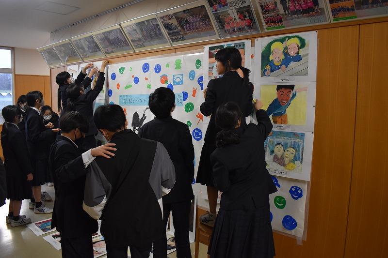 3年生美術科の授業。3年生は絵馬の制作に取り組んできました。作品が完成したもようで、今日は鑑賞会を行っていました。進路決定等に向けてのひとりひとりの思いがたっぷり詰まった絵馬の完成です。皆さんひとりひとりの願いが叶いますように!