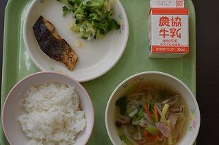 今日の給食のメニューは、ごはん、魚のハーブ焼き、グリーンサラダ、マカロニスープでした。調理師、調理員の皆さん、栄養教諭の田路先生、今週も美味しくて栄養満点の給食をありがとうございました。来週もよろしくお願いします。