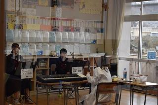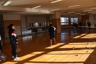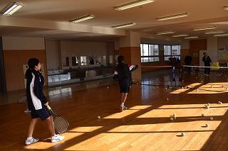 校内では、吹奏楽部と女子ソフトテニス部が練習に励んでいました。ソフトテニス部は、多目的フロアを使って練の練習。これからはコートが使えない日が多くなります。室内で工夫しながら練習に取り組んでください。