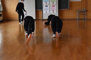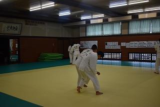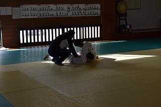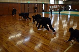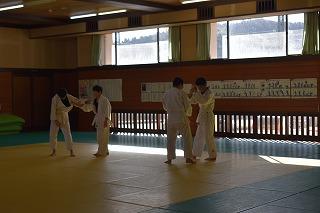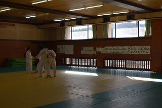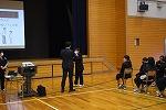 お隣の総合体育館では、柔道部と女子バスケットボール部が練習。柔道部は、見学したときはちょうど、部活動指導員の先生のアドバイスを受けながら、寝技の技術力アップに取り組んでいるところでした。