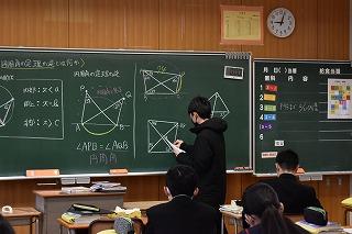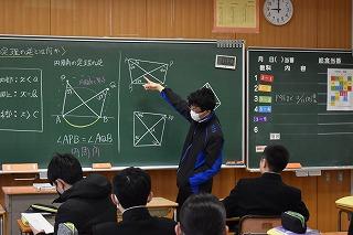 3年数学科の授業。三平方の定理について学習していました。