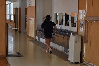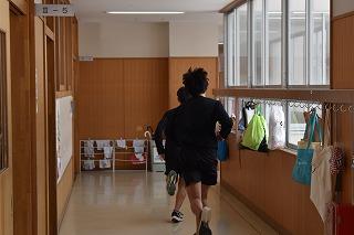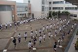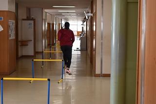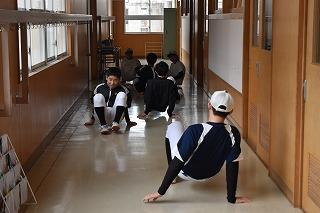 男女陸上部も校内を使っての練習。顧問の先生の指導のもと、全力で各自のトレーニングに取り組む、いつも通りの練習風景でした。