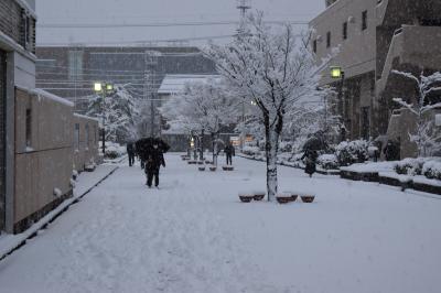 22日未明から降り積もった雪によって、津幡中の校門から玄関までが雪に埋まってしまっていました。